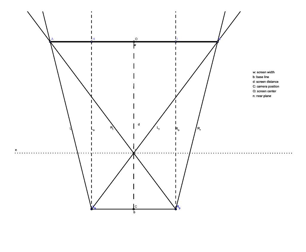 I tried to build the geometry to achieve a realistic perception of an object in 3D space rather than providing the most pleasing visual experience. All required parameters in the model are found through calibration so that no values of actual screen size and eye distance need to be entered by the user manually. It allows for objects on both sides of the screen which acts as the "window" into the virtual space.