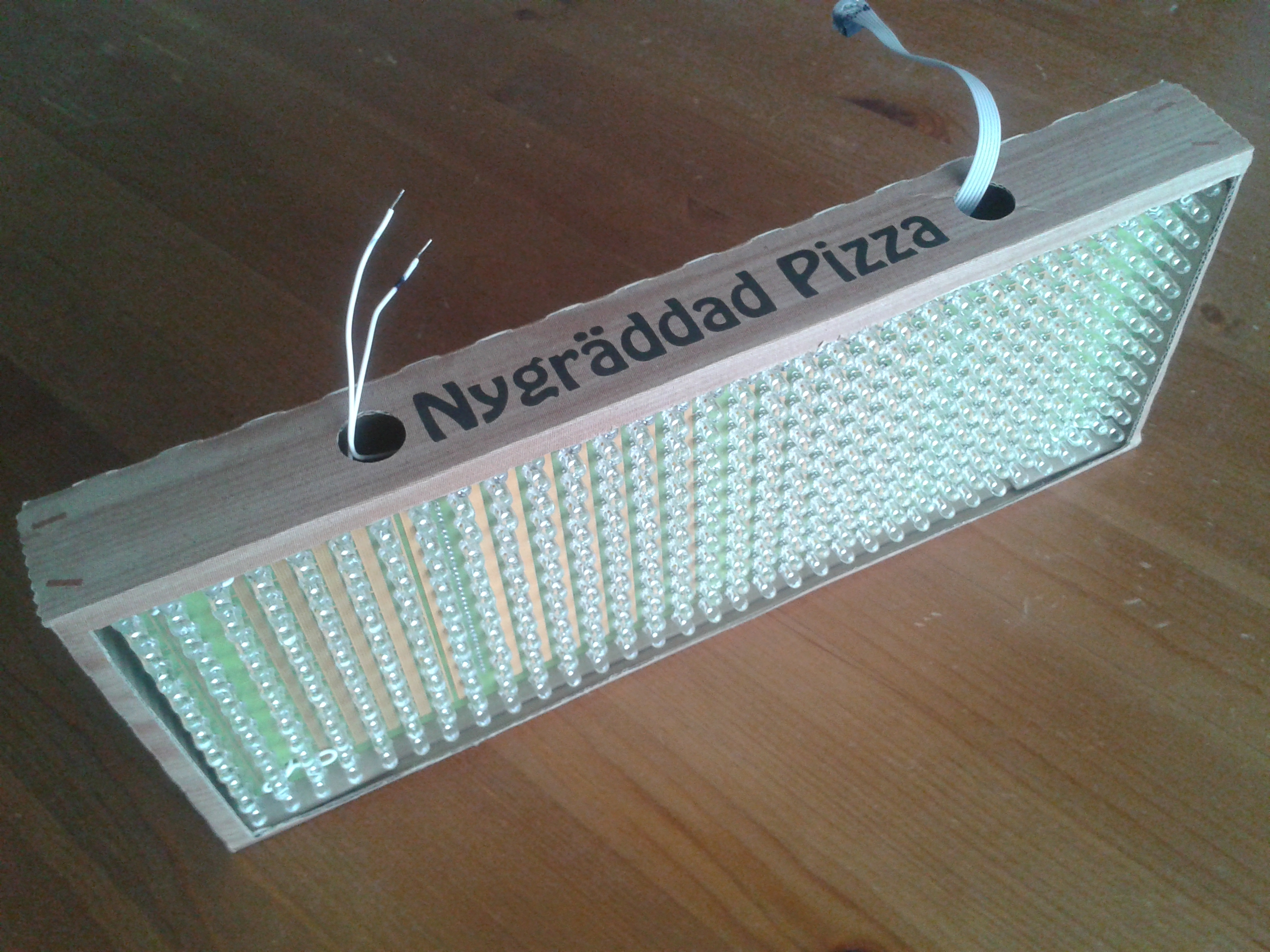 A friend kindly donated a 32-by-12 LED-matrix. It then became my mission to build a controller to be able to convey simple messages. Much like LED Matrix but scaled up a bit.